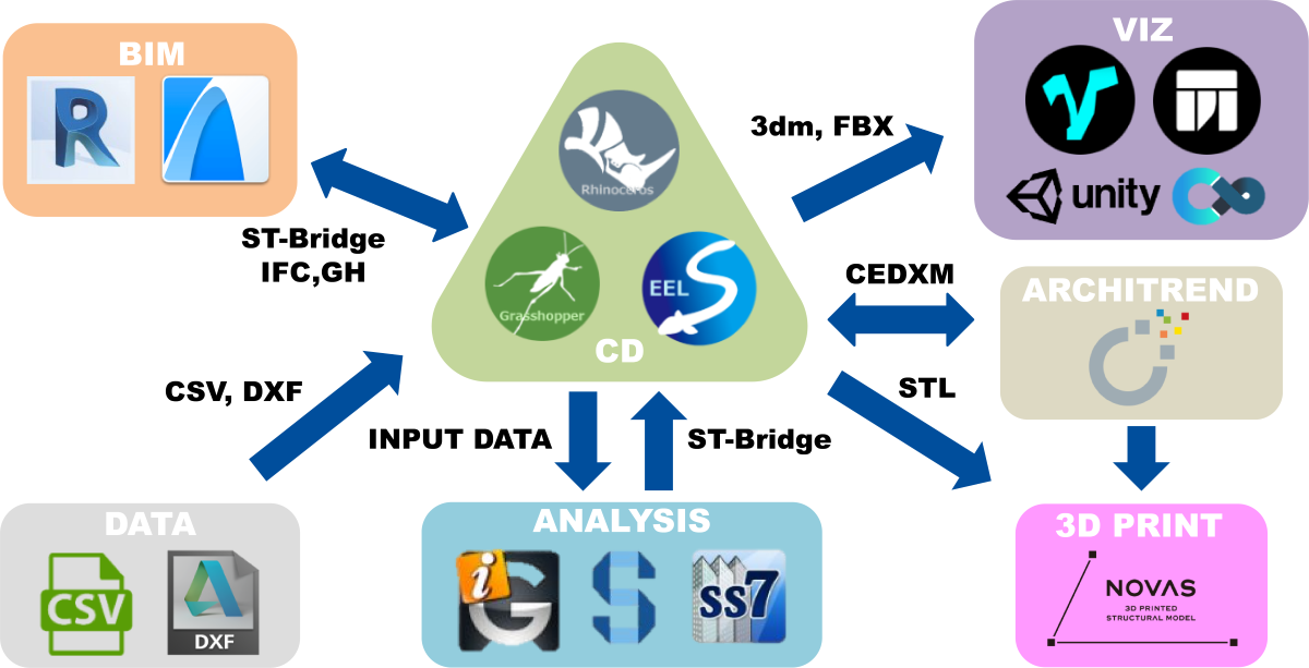 このソフトウェアは、RhinocerosやGrasshopperで作成した任意形状のモデルから構造3Dモデル生成や構造解析、データ変換を行うことができ、先進的な技術を活用したプログラムです。