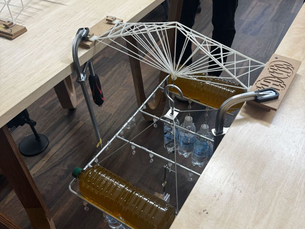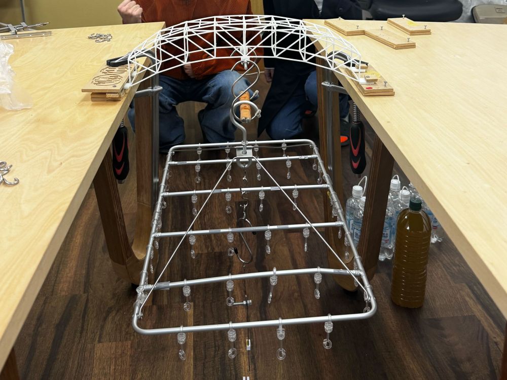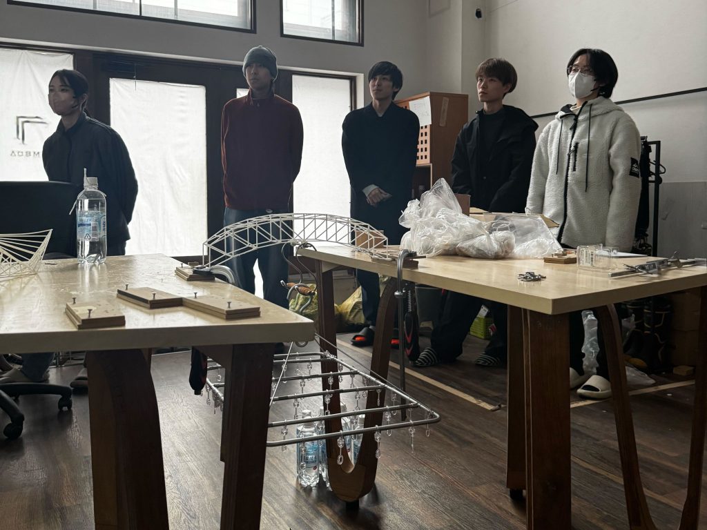 第8回はブリッジコンテストを実施し、造形した橋を用いた載荷実験を行いました。