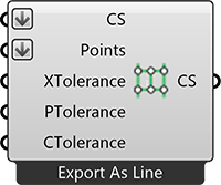 | EEL>Utility>IntersectCurves Intersect Curvesコンポーネント ![]() ![]() | Curve Settingコンポーネントで設定した情報を元に線分の交差計算を行うコンポーネント。 インプットおよびアウトプットの数は変更することができます。 コンポーネントを右クリックして表示されるメニューのExport As Lineをクリックすると線分出力と曲線出力を切り替えることができます。 Input