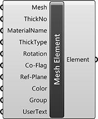 | EEL>Model>Mesh Element Mesh Elementコンポーネント ![]() ![]() | 構造モデル及び解析モデルの板要素をMeshから作成するコンポーネント。 Input