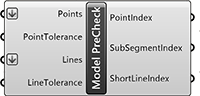 | EEL>Utility>Model PreCheck Model PreCheckコンポーネント ![]() ![]() | 節点や線分の重複などを検出するモデルチェックを行うコンポーネントです。 Input