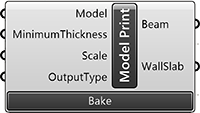 | EEL>Utility>Model Print Model Printコンポーネント ![]() ![]() | 3Dプリント用のモデルを作成するコンポーネント Input