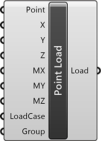 | EEL>Load>Point Load Point Loadコンポーネント ![]() ![]() | 解析モデルの節点荷重情報を点(Point)から作成するコンポーネント。 Input