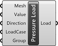 | EEL>Load>Pressure Load Pressure Loadコンポーネント ![]() ![]() | 解析モデルの圧力荷重情報をメッシュ(Mesh)から作成するコンポーネント。 Input