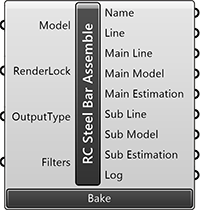 | EEL>RC>RC Steel Bar Assemble RC Steel Bar Assembleコンポーネント ![]() ![]() | RC配筋の表示と体積や重量を出力するコンポーネント。 Input