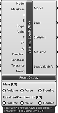 | EEL>Load>Seismic Load Seismic Loadコンポーネント ![]() ![]() | 層重量の算定・地震荷重を作成するコンポーネント。 ※開発中のコンポーネントです。 Input