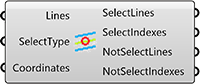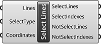 | EEL>Utility>Select Lines Select Linesコンポーネント ![]() ![]() | 指定した座標値、座標範囲あるいは平面上にある線分を抽出するコンポーネント。 Input