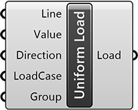 | EEL>Load>Uniform Load Uniform Loadコンポーネント ![]() ![]() | 解析モデルの等分布荷重情報を線分(Line)から作成するコンポーネント 。 Input