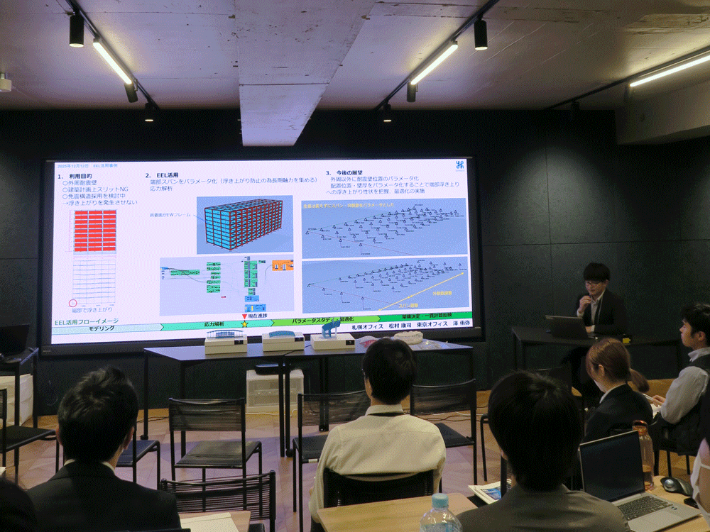 2025年12月12日(金)、石本建築事務所 東京オフィスにて、『EEL Seminar 2025』が開催されました。本イベントはEELライセンスユーザーを対象に、EELの最新情報の紹介や、ユーザーによる活用事例の共有を目的として開催され、約30名が参加しました。